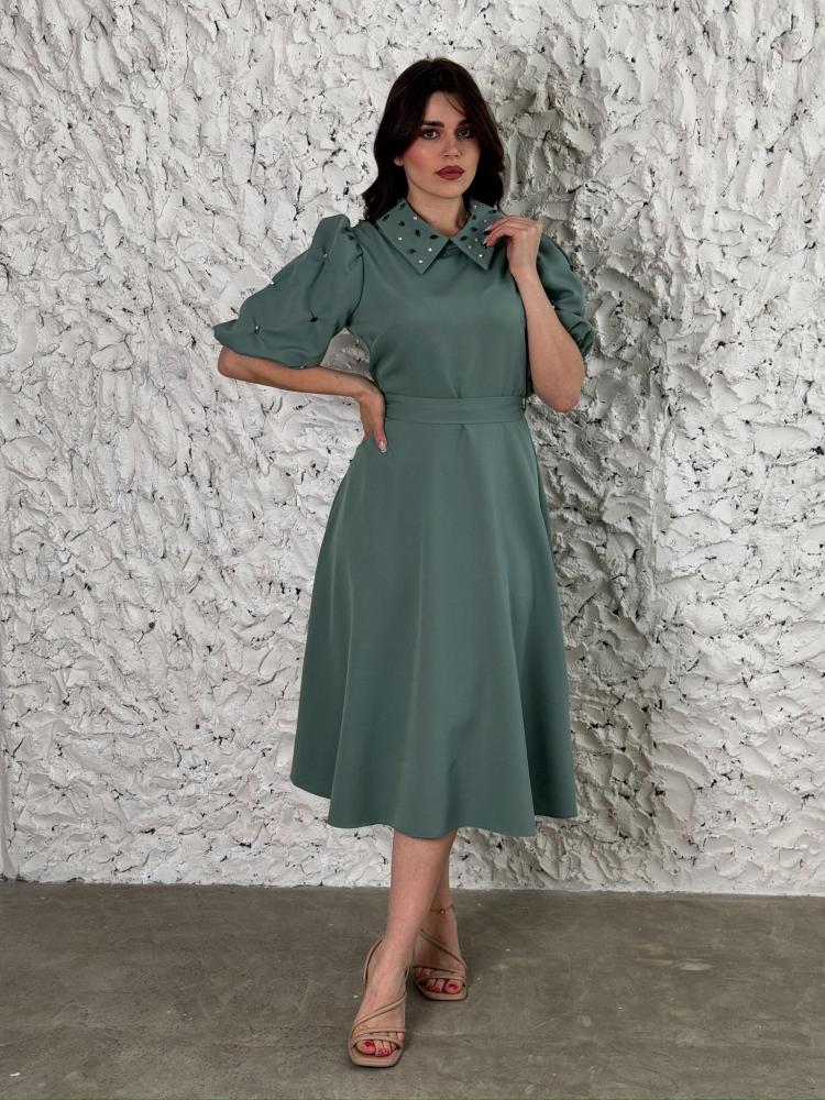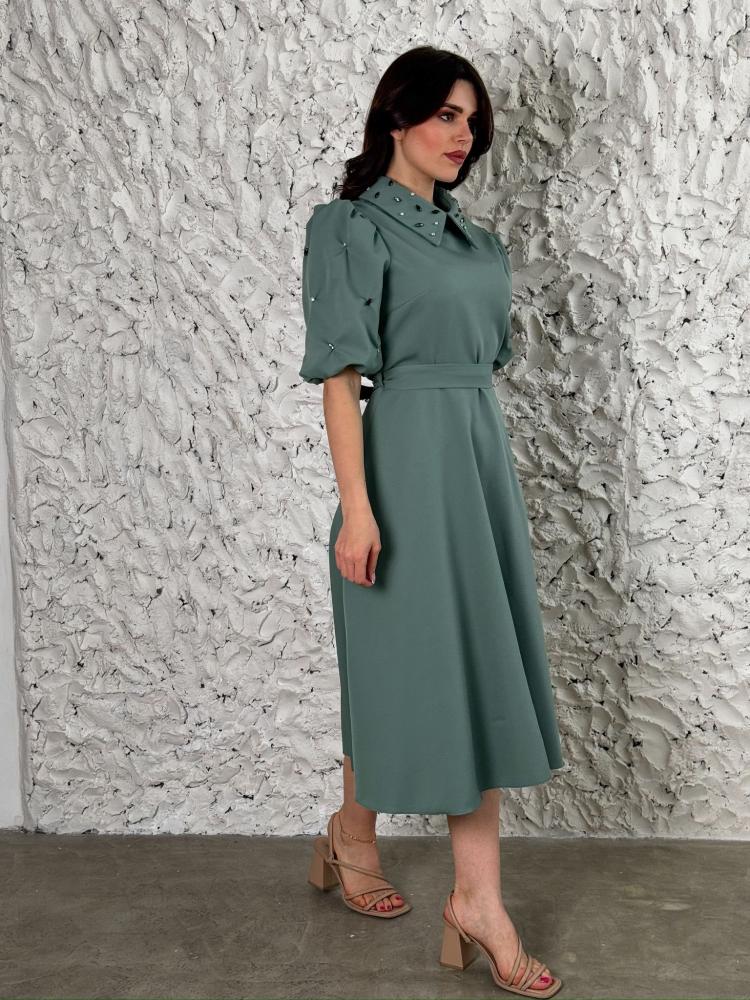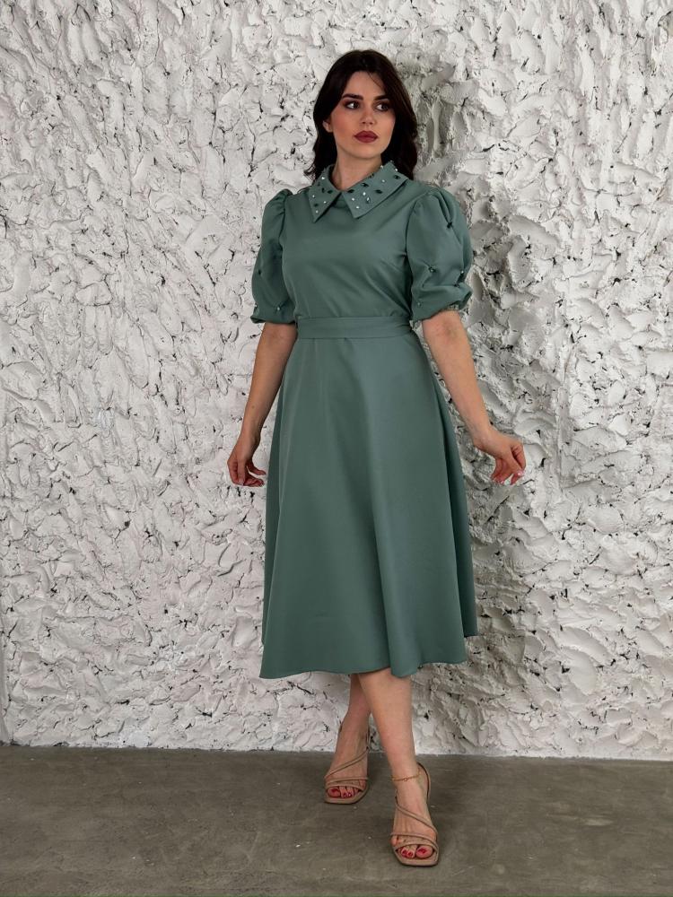 66.66 $فستان أخضر كلاسيكي بلمسات أنثوية راقية